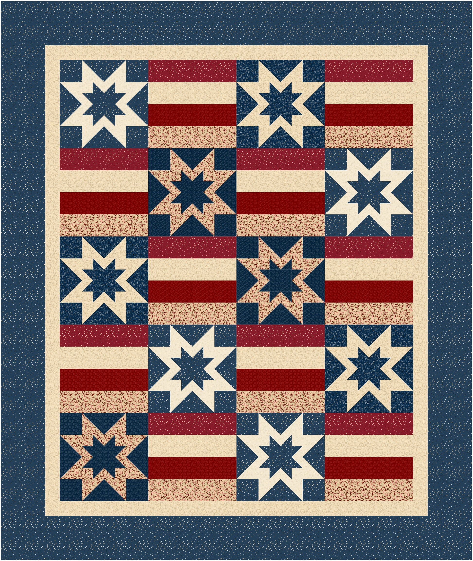 Showcase your patriotic pride with this captivating quilt pattern—a striking variation of the Honor and Glory design. Measuring a generous 64” x 76”, this quilt is thoughtfully sized to meet the standards for Quilts of Valor, making it an ideal choice for honoring those who have served. Each 12” finished star block radiates timeless American spirit, while the clear, step-by-step instructions employ modern piecing techniques to ensure both speed and precision. Designed with confident beginners in mind, this pattern offers an enjoyable and rewarding quilting experience. Create a meaningful masterpiece that celebrates both craftsmanship and country!
