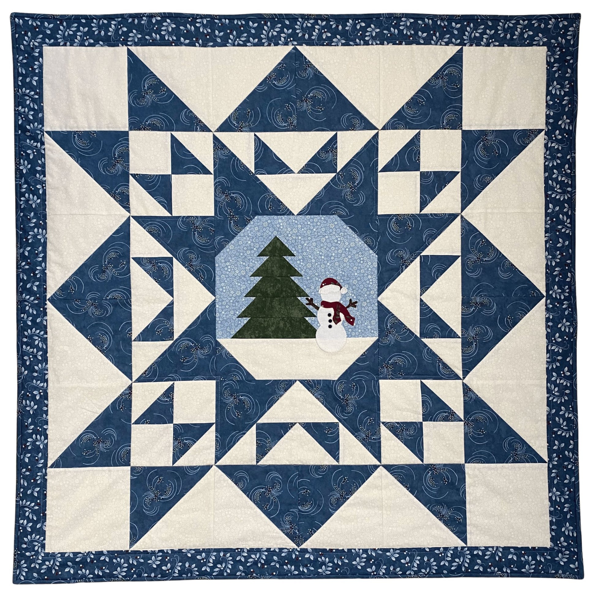 Star of Winter is a snowman applique on a pieced tree center block to create a winter option for the whole season! Both quilt center options are included in the pattern and both quilts finish to 40” x 40”.